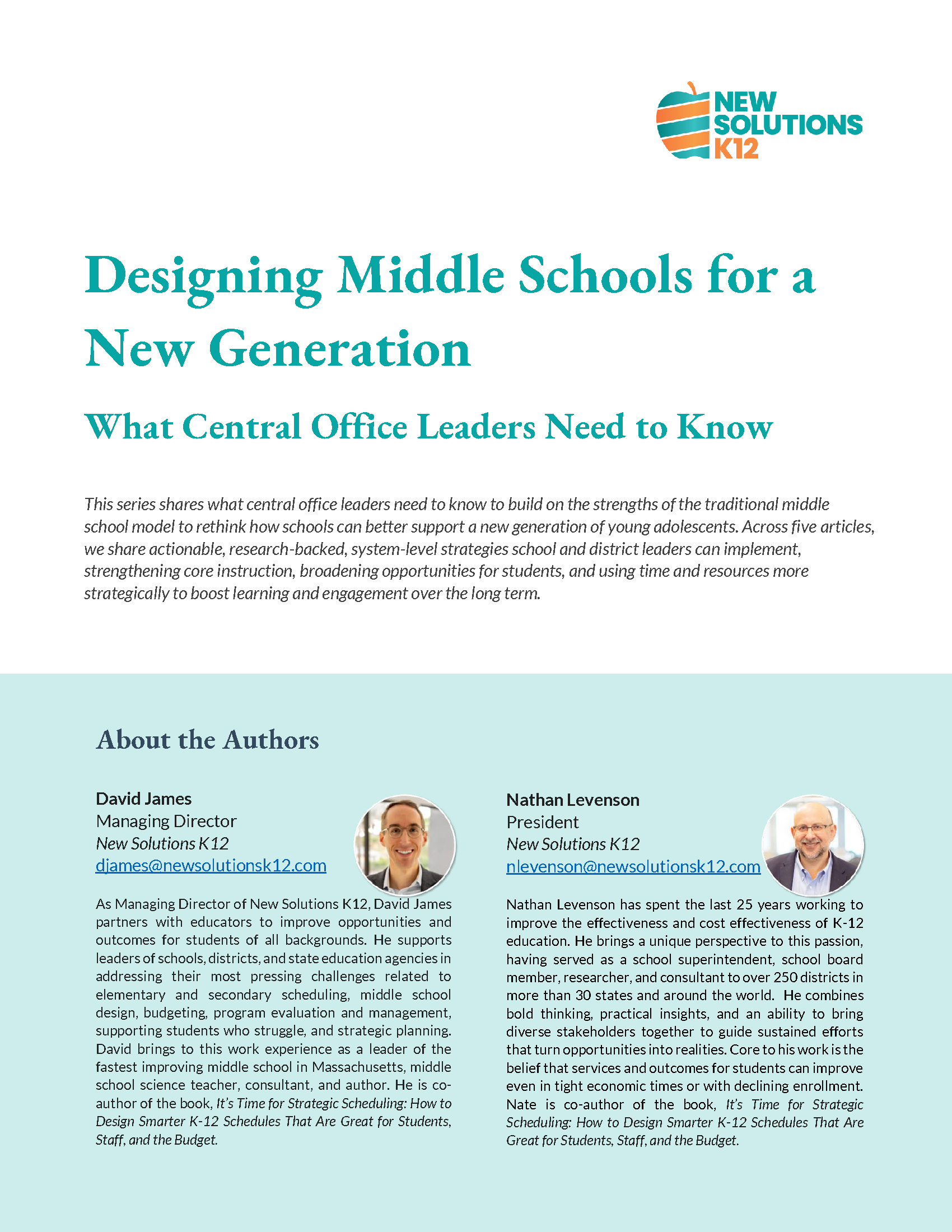 Designing Middle Schools for a New Generation: What Central Office Leaders Need to Know